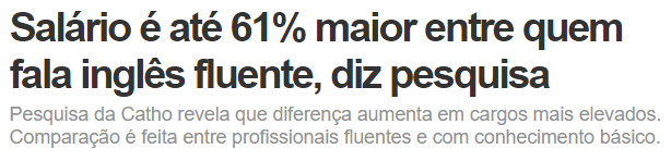 O profissional fluente em inglês tem um salário maior do que quem não fala inglês.