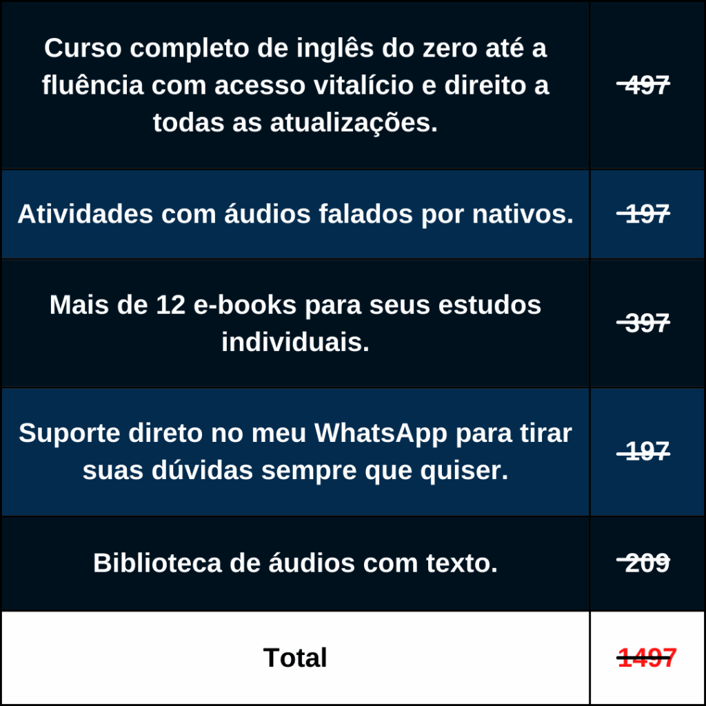 Por menos de R$ 0,63 centavos por dia você vai ter o passo-a-passo para falar inglês fluentemente, mesmo que você esteja partindo do absoluto zero.